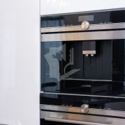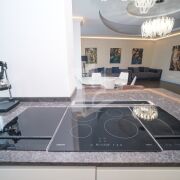 Кухня оснащена всей необходимой техникой. Стоит очистительная система воды, встроена кофемашина, гриль, соковыжималка, варочная панель.