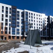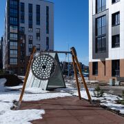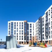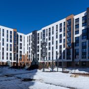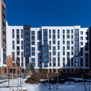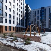 Закрытый внутренний двор с ландшафтным дизайном, свободный от автомобилей, современные детские площадки, спортивный комплекс.