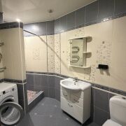Квартира готова для проживания, кухня со встроенной техникой, санузел совмещенный, пол - ламинат, плитка, натяжной потолок, лоджия застеклена, в прихожей шкаф-купе и гардеробная комната, установлена входная железная дверь, счетчики, домофон.