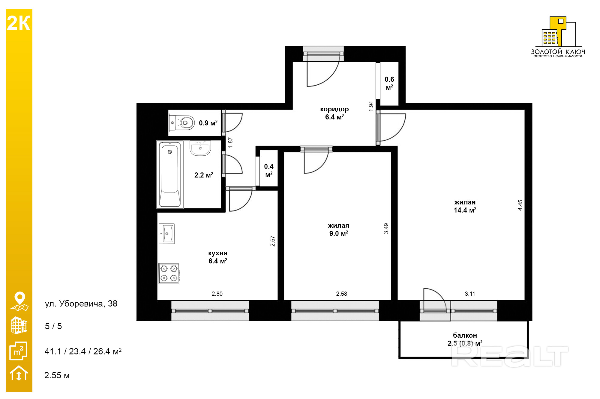 41.1 м²