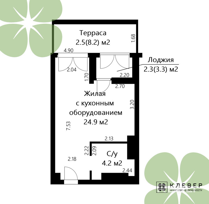 24.9 м²