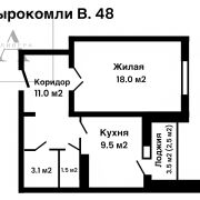 Эта квартира предлагает удобную и рациональную планировку, которая включает в себя: просторную жилую комнату, удобный коридор, раздельный санузел с большой ванной и практически квадратную кухню площадью 9,5 м2. В квартире установлены деревянные стеклопакеты, а лоджия полностью застеклена. На полу уложен практичный линолеум. Входная дверь металлическая.