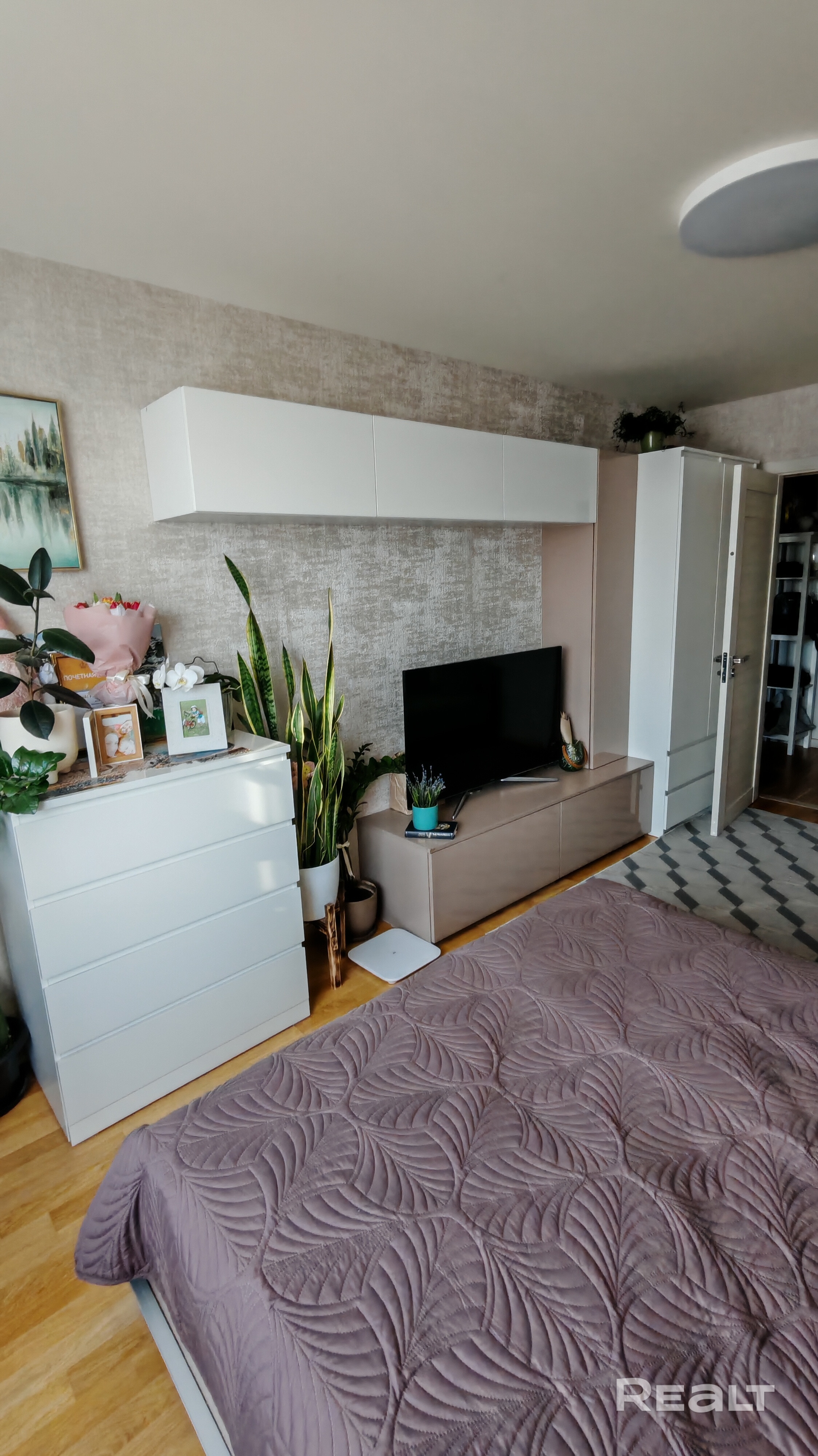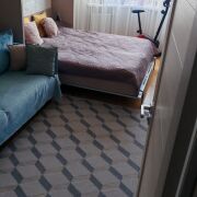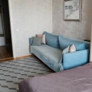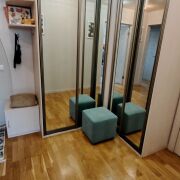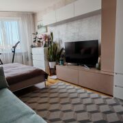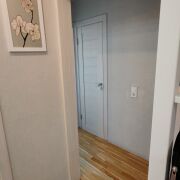 Выполнен качественный ремонт: установлена входная металлическая дверь, на полу уложена паркетная доска и плитка. В коридоре установлен шкаф-купе. Кухня оборудована всей необходимой встраиваемой техникой: варочная панель(газ), духовой шкаф, посудомоечная машина, вытяжка, фильтры для питьевой воды. Детская комната оснащена всей необходимой мебелью кровать, стол, шкаф. В спальне имеется встроенная ТВ-зона, с местами для хранения, а также 2-ух спальная кровать-трансформер (складывается в шкаф).