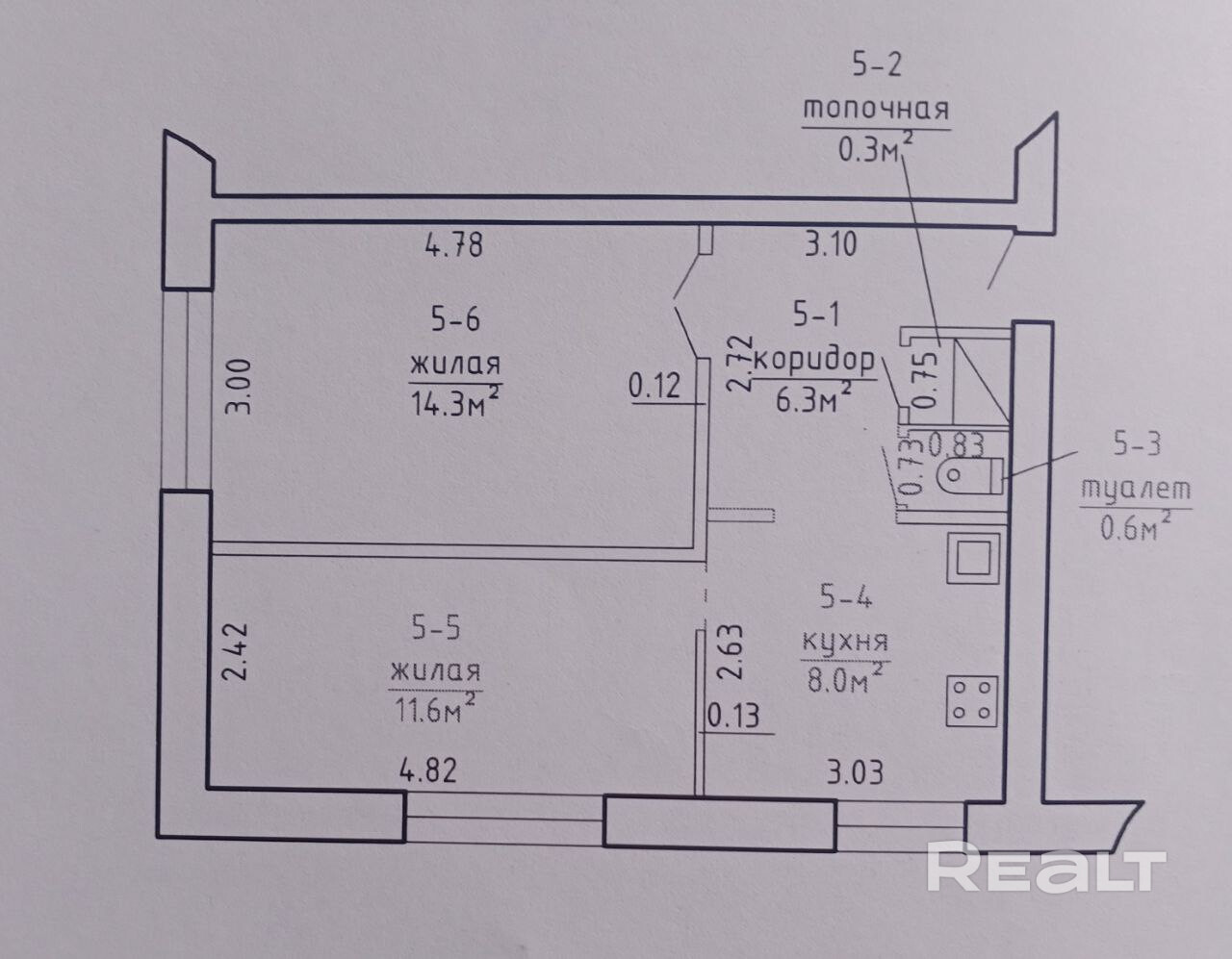 Площадь квартиры по СНБ 41.1 кв.м., жилая 25.9 кв.м., кухня 8.0 кв. м.