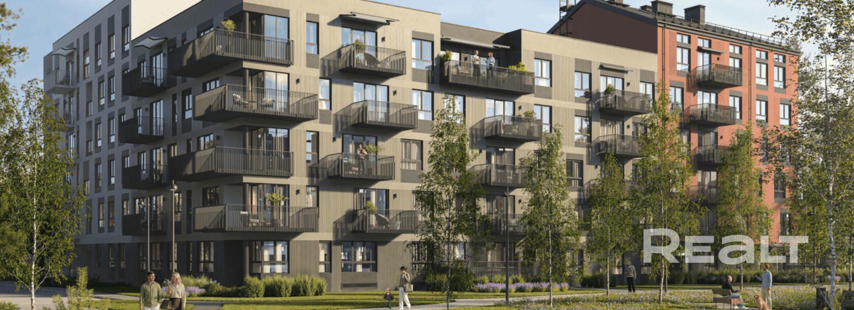 Квартиры с террасами на 1-м этаже площадью от 18 до 28 кв.м — полноценные террасы с видом в зеленый коридор и во двор.