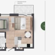 Квартиры с террасами на 1-м этаже площадью от 18 до 28 кв.м — полноценные террасы с видом в зеленый коридор и во двор.
