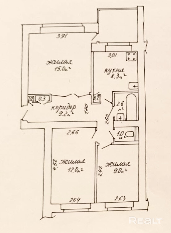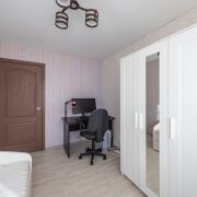 В квартире все комнаты просторные и изолированные, они идеально подойдут для дружной семьи, в которой каждый найдет своё место. Кухня размером в 8,3 м2 – оснащена бытовой техникой: газовая плита, вытяжка, холодильник, печь СВЧ. Вполне достаточно места и для обеденной зоны, и для зоны готовки; стены оклеены обоями, фартук облицован плиткой. Санузел раздельный, облицован плиткой.