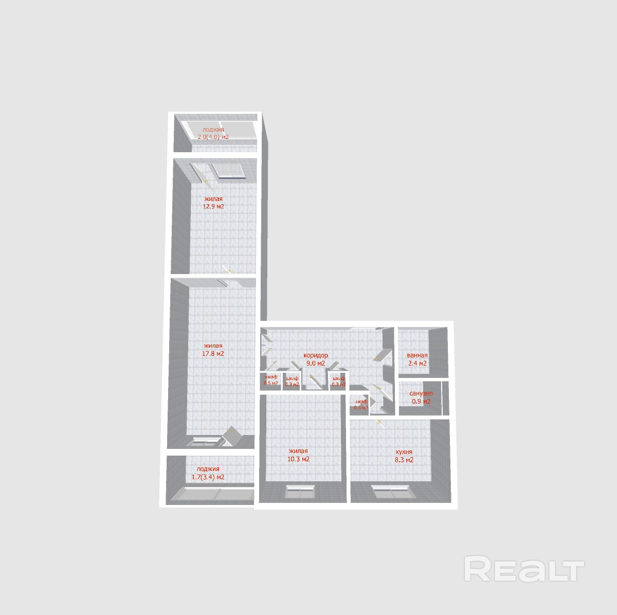 Просторная 3-комнатная квартира на проспекте газеты Звязда 35
