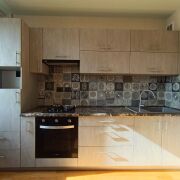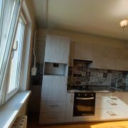 Встроенная кухня из МДФ (доводчики, новая варочная панель, электрический духовой шкаф и вытяжка брэнда Exiteq, оригинальный «фартук», мойка керамогранит).