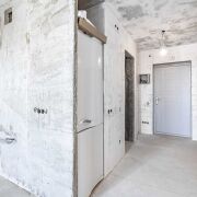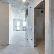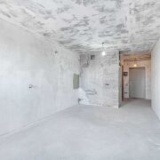 Квартира готова к чистовой отделке. Стены и потолки выровнены и оштукатурены.