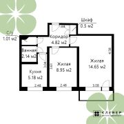 Площадь: общая по СНБ — 39,05 м2 (жилые комнаты: 14,65 м2 и 8,95 м2);