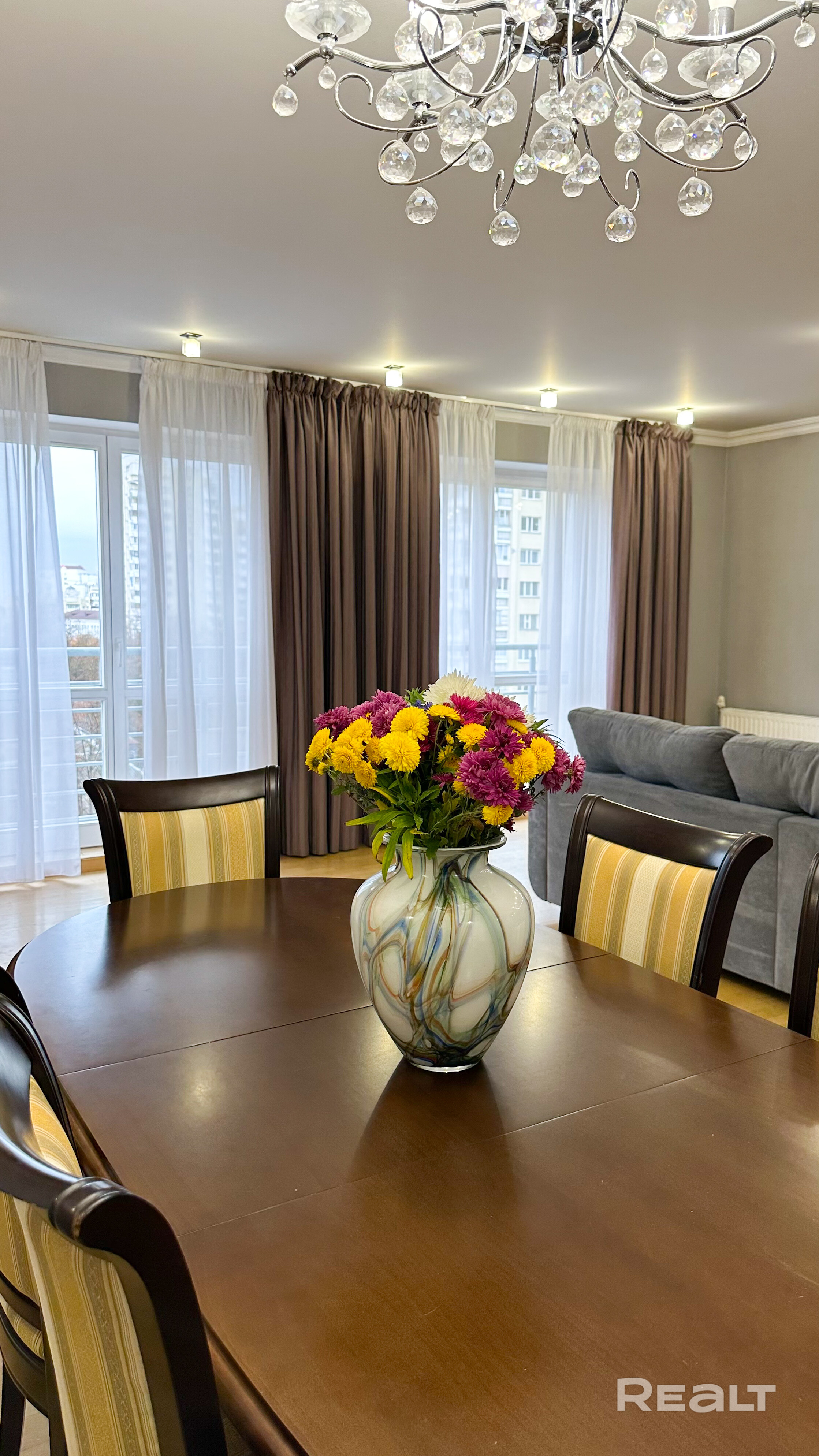 Шикарная инфраструктура - рядом с домом находится живописная зона отдыха Комсомольского озера, Парк Победы, Стела "Минск-город-герой", Главная велодорожка города, все необходимое для комфортной жизни находится в шаговой доступности: многочисленные продовольственные магазины, спортивные объекты, сады, школы, гимназия №36, банки, аптеки, кафе, рестораны, торговые центры, в том числе недалеко торговый центр "Корона" и "Корона замок", Дворец спорта. В доме есть охраняемый круглосуточно и отапливаемый подземный гараж.