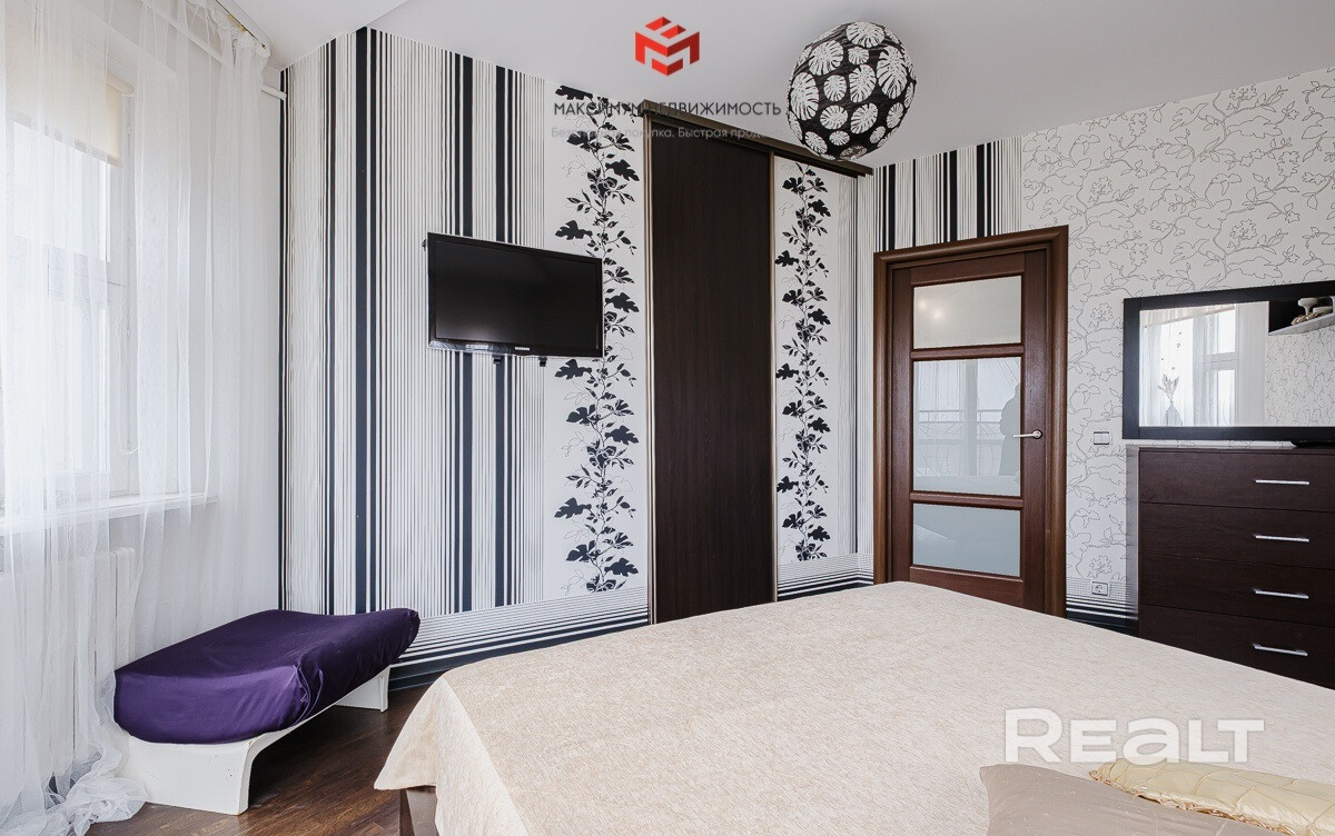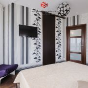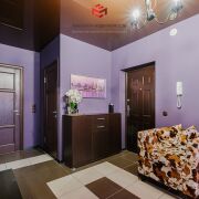 В коридоре и спальне оборудованы огромные гардеробные — всё спрятано за дверями-купе, никаких видимых вешалок и полок. Множество места для одежды, обуви и аксессуаров.
