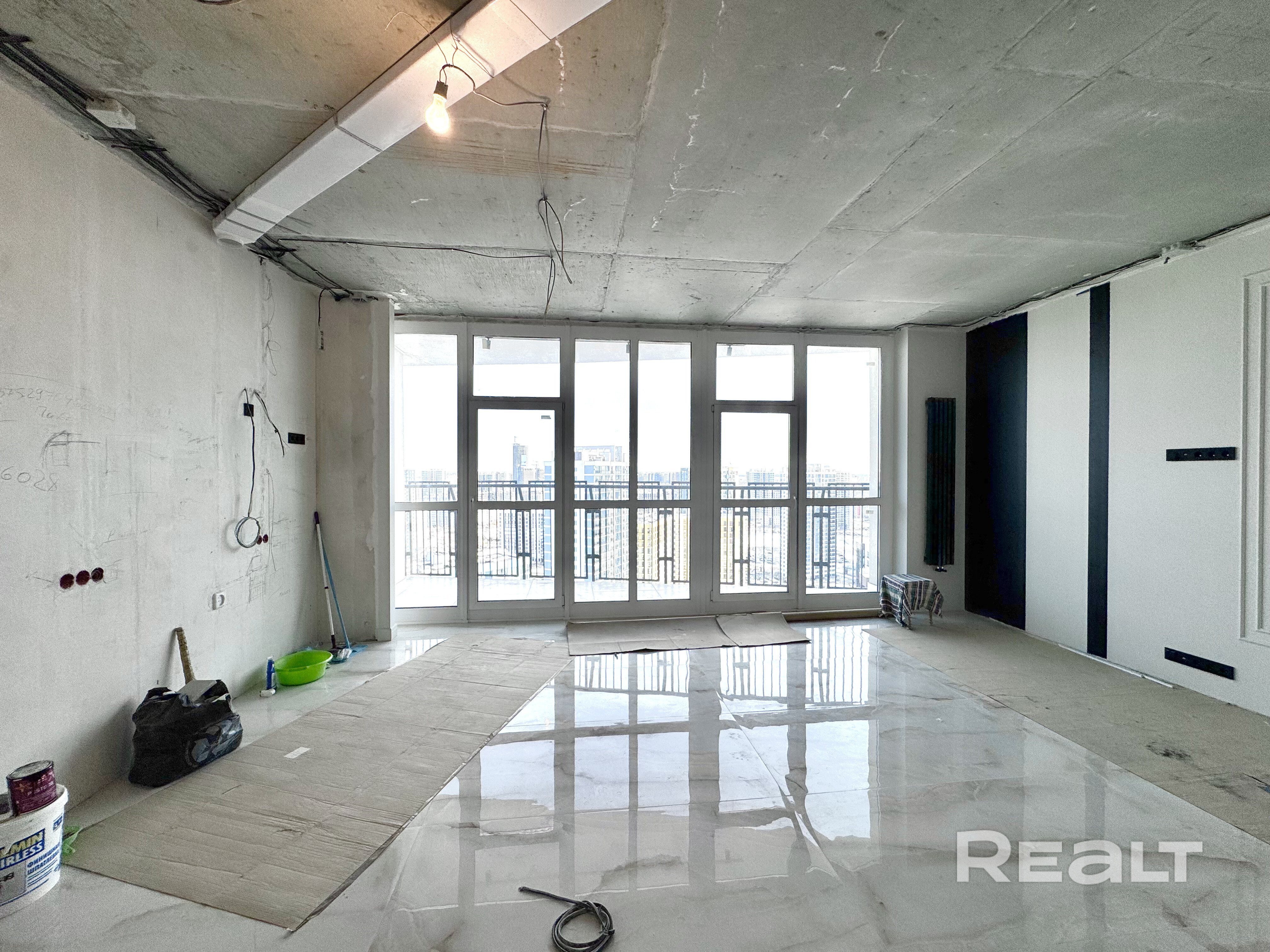 Квартира, в которой осталось сделать потолки и мебель под себя.