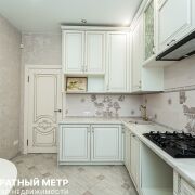 Кухня — просторная, выполнена из массива, отлично подойдет для приготовления любимых блюд и семейных ужинов.