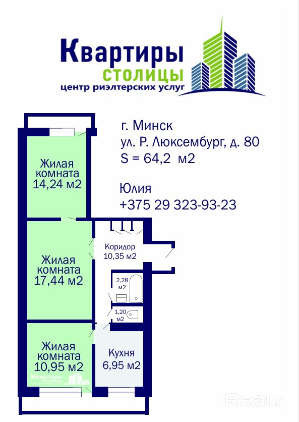 Купить 3-комнатную квартиру, г. Минск, ул. Люксембург, 80