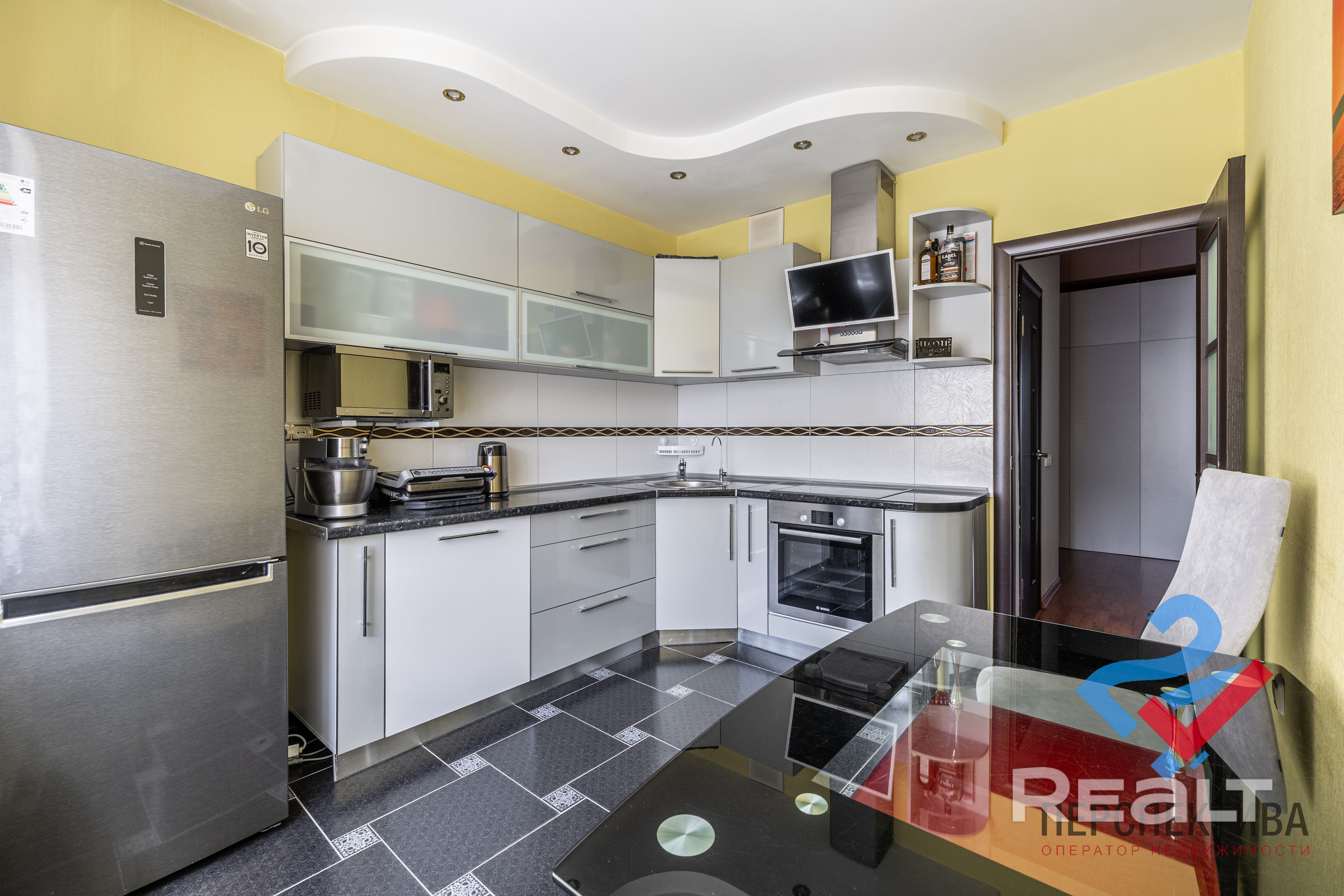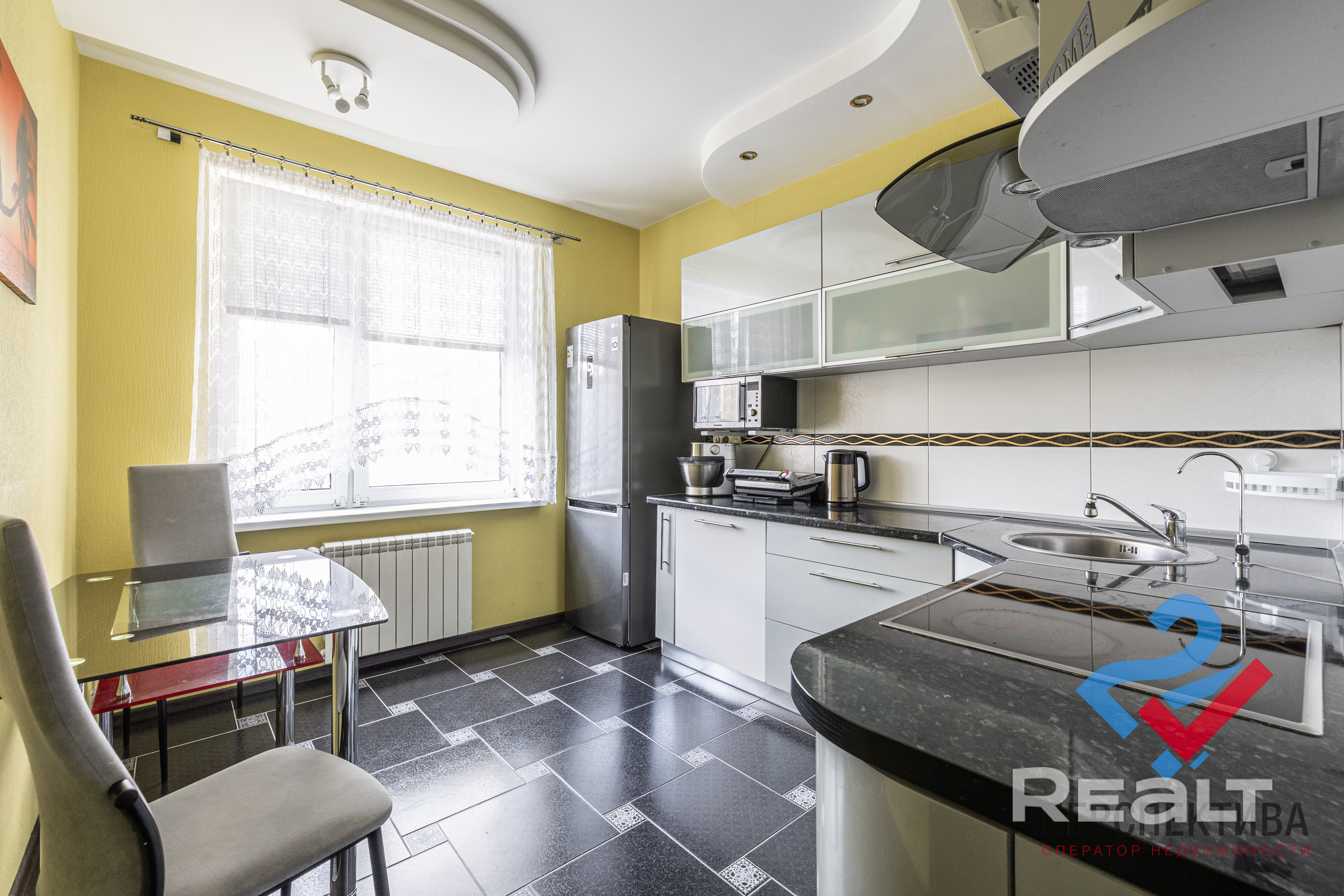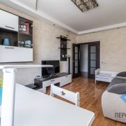 В квартире большая кухня площадью 9.6 м2 и две отдельные комнаты размером 15.7 м2 и 12.6 м2. Окна выходят на обе стороны: два окна во двор (запад), лоджия с видом на улицу Лобанка (восток). В жилых комнатах и коридоре напольное покрытие — ламинат, на кухне и в санузлах — плитка. Кухня оснащена всей необходимой техникой: холодильник LG, варочная панель, вытяжка, духовой шкаф и посудомоечная машина Bosch, а также фурнитура на доводчиках Blum. Установлен отдельный контур на питьевую воду с фильтрами очистки. Во всей квартире — двухкамерные ПВХ стеклопакеты с защитой от открывания. Хорошие радиаторы отопления с возможностью регулировки температуры.