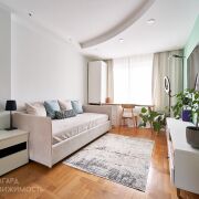 В квартире выполнен качественный ремонт. На полу в жилых комнатах натуральный паркет, в остальных помещениях плитка. Стены выровнены. Потолки выровнены и окрашены. По всей квартире ПВХ стеклопакеты.