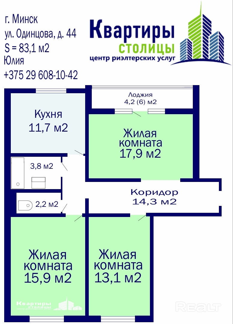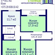 - Идеальный метраж для семьи: площадь по СНБ 83,1 кв. м. Общая площадь 78,9 кв. м. Три абсолютно раздельные комнаты (17,9 / 13,1 / 15,9 м2). У каждого будет своё личное пространство для отдыха, работы или игр.