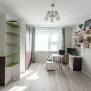 - В шаговой доступности находятся крупные торговые центры, такие как "Грин Сити", магазины "Алми", аптеки, поликлиники, детские сады и школы, что позволяет решать повседневные вопросы без лишних затрат времени на дорогу. Рядом есть и объекты культурного назначения, такие как рестораны, кафе, бассейн, фитнес, тренажерные залы - всё что нужно для комфортной жизни современной семьи!