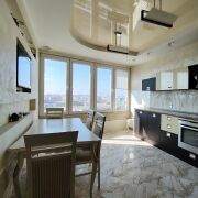 В квартире никто не проживал, отделка квартиры продумана до мелочей и выполнена исключительно из импортных качественных материалов, вся плитка и сантехника из салонов Сквирел, санузел оборудован сантехникой Villeroy & Boch, на стенах венецианская штукатурка, мраморные подоконники, вся бытовая техника премиум-класса и ввезена исключительно из Германии.