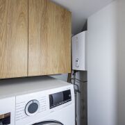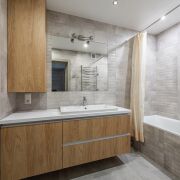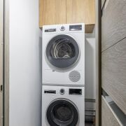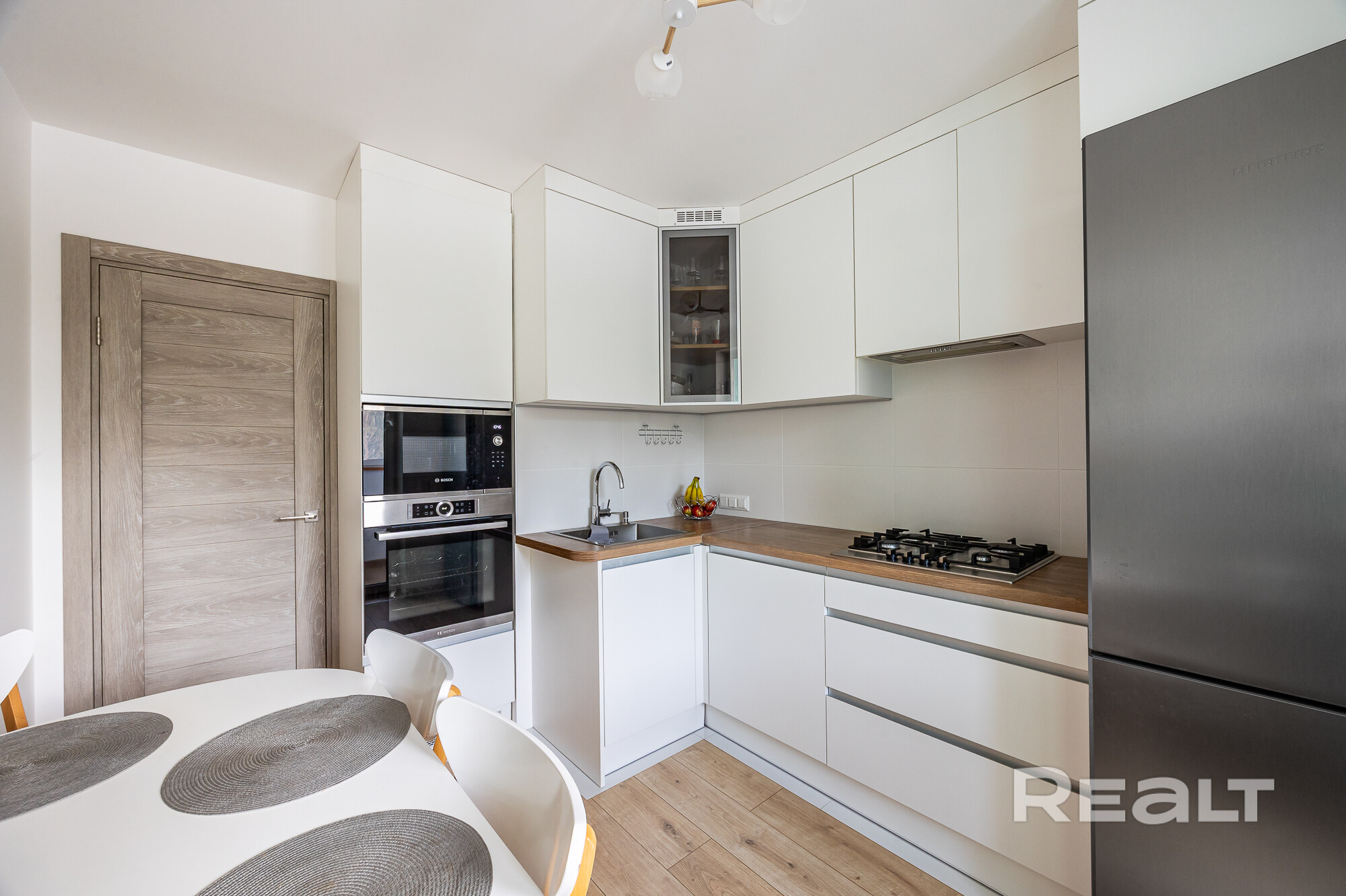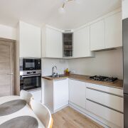 Встроенная кухня оборудована премиальной встроенной техникой: варочная газовая панель, духовой шкаф, СВЧ, холодильник и посудомоечная машина. На всю технику действует гарантия.