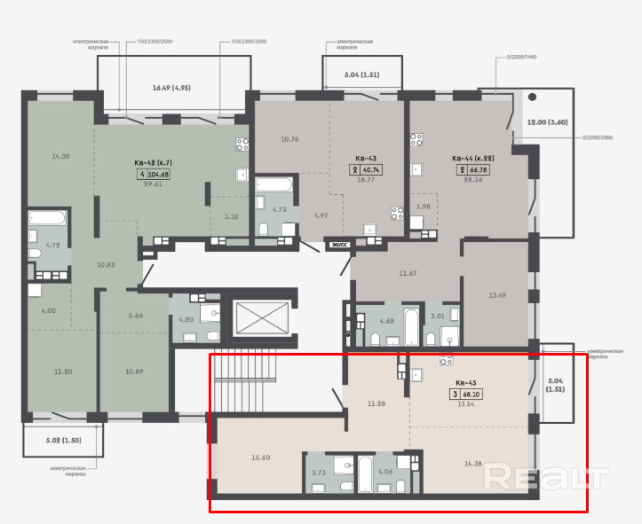 Площади квартир от 37,62 до 110,90 кв.м — от студий до просторных 3-комнатных квартир.