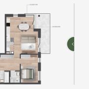 Квартиры с террасами на 1-м этаже площадью от 18 до 28 кв.м — полноценные террасы с видом в зеленый коридор и во двор.
