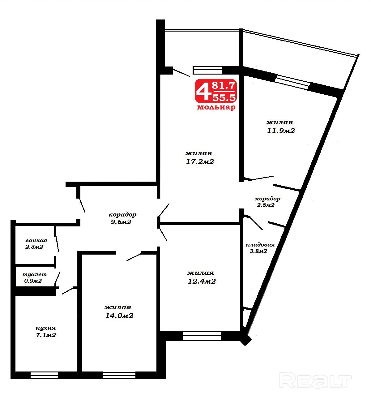 55.5 м²