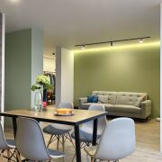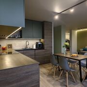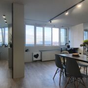 Просторная гостиная площадью 44,32 м2 с панорамным видом на водохранилище Дрозды соединена с кухней, выполненной по индивидуальному проекту и оснащённой современной техникой ведущих европейских брендов. В квартире также есть уютная спальня (12,64 м2), две просторные комнаты (17,83 и 20,86 м2), кабинет (10,56 м2), стильная ванная комната с постирочной (9,54 м2) и настоящий хаммам (2,6 м2) — всё выполнено с максимальным вниманием к деталям и использованием высококачественных материалов.