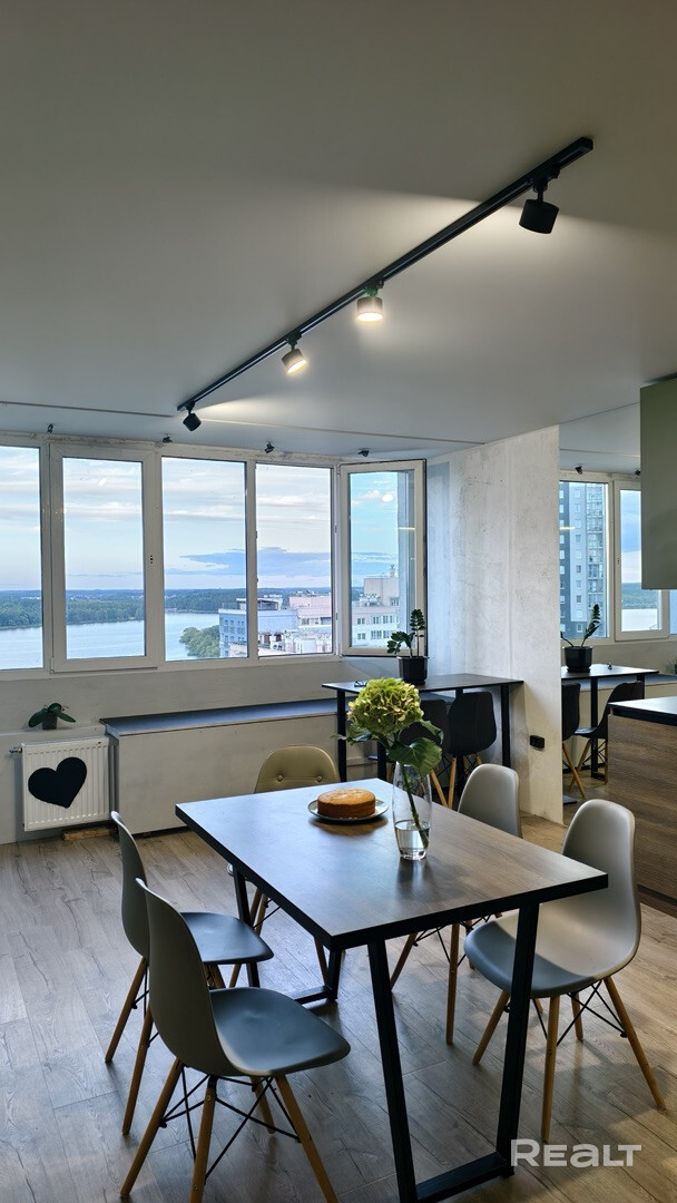 Представляем вашему вниманию уникальную дизайнерскую 5-комнатную квартиру с великолепным видом на водохранилище Дрозды, общей площадью 126,9 м2, расположенную по адресу улица Ратомская, дом 7. Эта эксклюзивная квартира находится на 15 этаже высотного дома, где вы сможете ежедневно наслаждаться живописными рассветами и закатами в режиме онлайн!