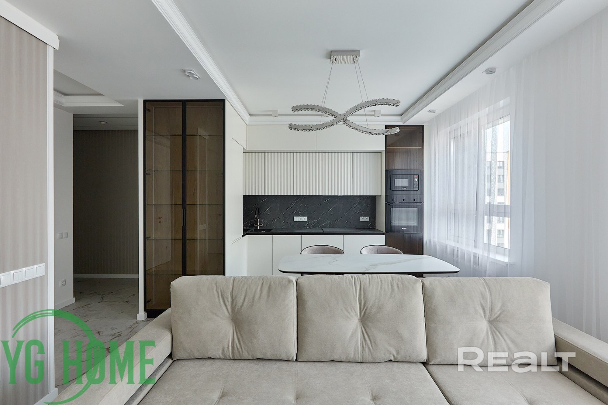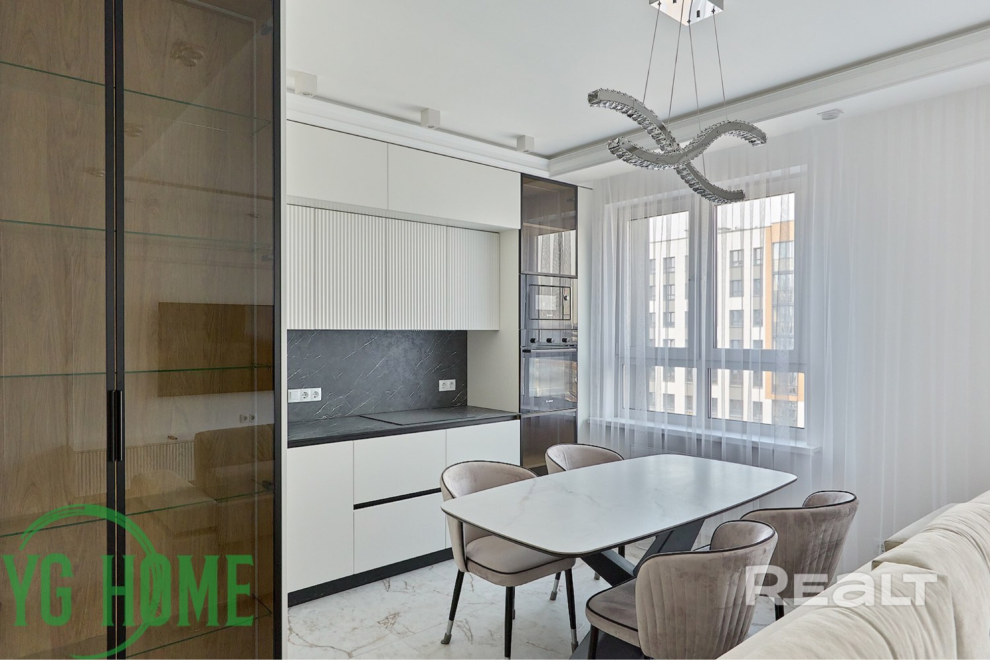 Продается просторная двухкомнатная квартира с премиальным ремонтом и полностью готова к проживанию в ЖК Левада. Квартира продается с машино-местом и подвальным помещением. Максимально удобная и практичная планировка: прихожая, кухня-гостиная, спальня, два санузла, лоджия. - вся мебель изготовлена на заказ и из МДФ;-потолки гипсокартон (подсветка по периметру потолков, и зонирование комнат светом) - продуманная разводка электрики с розетками и включателями света по зонам, переходными выключателями;-просторные шкафы, много мест для хранения;-кухня с механизмами Blum, столешница изготовлена из искусственного камня;-встроенная техника премиальных брендов- варочная панель, вытяжка, духовой шкаф, печь СВЧ, посудомоечная машина, холодильник фирмы Bosch и Самсунг. - гостиная зонирована на зону ТВ и отдыха и обеденную зону с кухней;- два санузла !Установлена стиральная машина;В цену продажи входит выкупленное машино-место у входа в дом на открытой парковке со шлагбаумом, а также подвальное помещение. Жилой комплекс «Левада» - это закрытая благоустроенная территория на набережной реки Свислочь со своей пляжной зоной. Здания оформлены с использованием скандинавских мотивов, вентилируемые фасады в черно-белой гамме, с вкраплениями «дерева», ухоженные подъезды и территория. Круглосуточное видео наблюдение и домофон с распознаванием лиц.Развитая транспортная и социальная инфраструктура. Удобные подъездные пути, вместительная придомовая наземная парковка. Общество с ограниченной ответственностью «ЮГ Хоум» УНП: 193511758 Лицензия: 02240/412 от 19.03.2021, Министерство юстиции РБ (риэлтерские услуги).