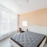 Новая квартира с хорошим ремонтом полностью готова к проживанию. В коридоре банкетка с местом для хранения, шкаф 2/3 для вешалок в 2 ряда, 1/3 шкафа - полки. Большая, просторная кухня - мечта хозяйки. На балконе выведен свет, на полу ламинат. В спальне умный светильник с управлением с телефона.
