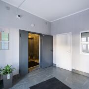 В доме расположены продуктовый магазин, банк, пункт выдачи и салон красоты.