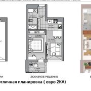 - Свобода планировки: Благодаря двум окнам квартира легко превращается в стильную ев ро-двушку.