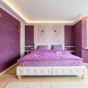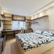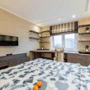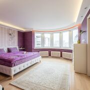 В третьей комнате двуспальная кровать 160 х 200 и двуспальный диван-книга в четвёртой комнате, выход на вторую лоджию.