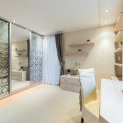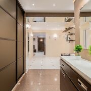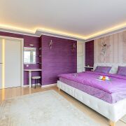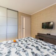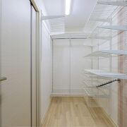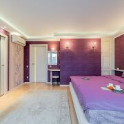 В большой спальне двуспальная кровать 190 х 200, кондиционер, гардеробная комната.
