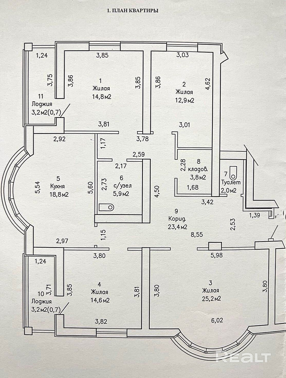 Грамотная планировка: 3 отдельные комнаты, кухня-гостиная, 2 санузла (в одном предусмотрена ванна, во втором душ-кабина), 2 лоджия, 2 гардеробные комнаты — идеальное решение для большой семьи.