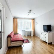-Ремонт выполнен на высоком уровне: по всей квартире уложен качественный ламинат в теплых древесных тонах, создающий уютную атмосферу. Стены оклеены свежими современными обоями, потолки выровнены и окрашены.