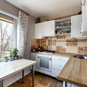 - Современная встроенная кухня оснащена всем необходимым для комфортной жизни: белый гарнитур высокого качества, газовая плита, встроенная посудомойка и просторная рабочая зона с деревянной столешницей. Окно, наполняет кухню естественным светом и воздухом. Декоративная плитка на фартуке добавляет характер и стиль интерьеру, создавая пространство, где приятно готовить и проводить время с семьей.