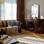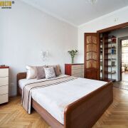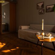 Благодаря высоким потолкам и большим окнам квартира очень светлая и уютная. Окна выходят на обе стороны света: из одних окон открывается живописный вид на набережную реки Свислочь и парк Горького, из других – на тихий озелененный двор.