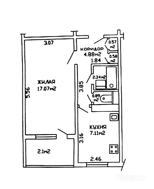 Общая площадь указана по СНБ (с учётом лоджии) - 35.5 м2.
