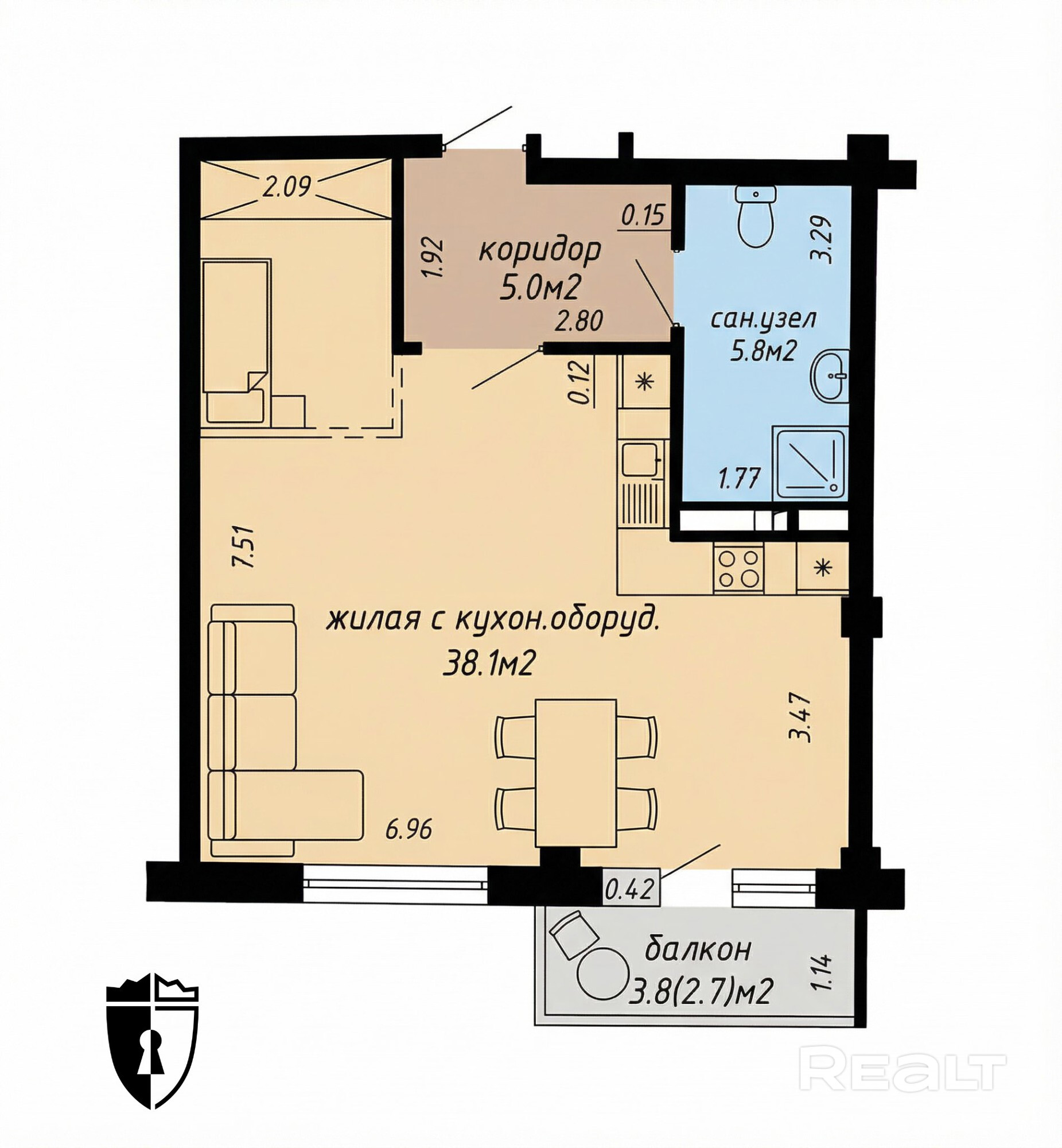 38.1 м²