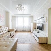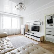 Выполнен качественный ремонт. Со вкусом подобраны все предметы интерьера и отделочные материалы.