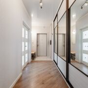 Отделка: пол – ламинат и плитка, потолок – натяжные и гипсокартонные, стены оклеены обоями, установлены стеклопакеты и надежная входная металлическая дверь.