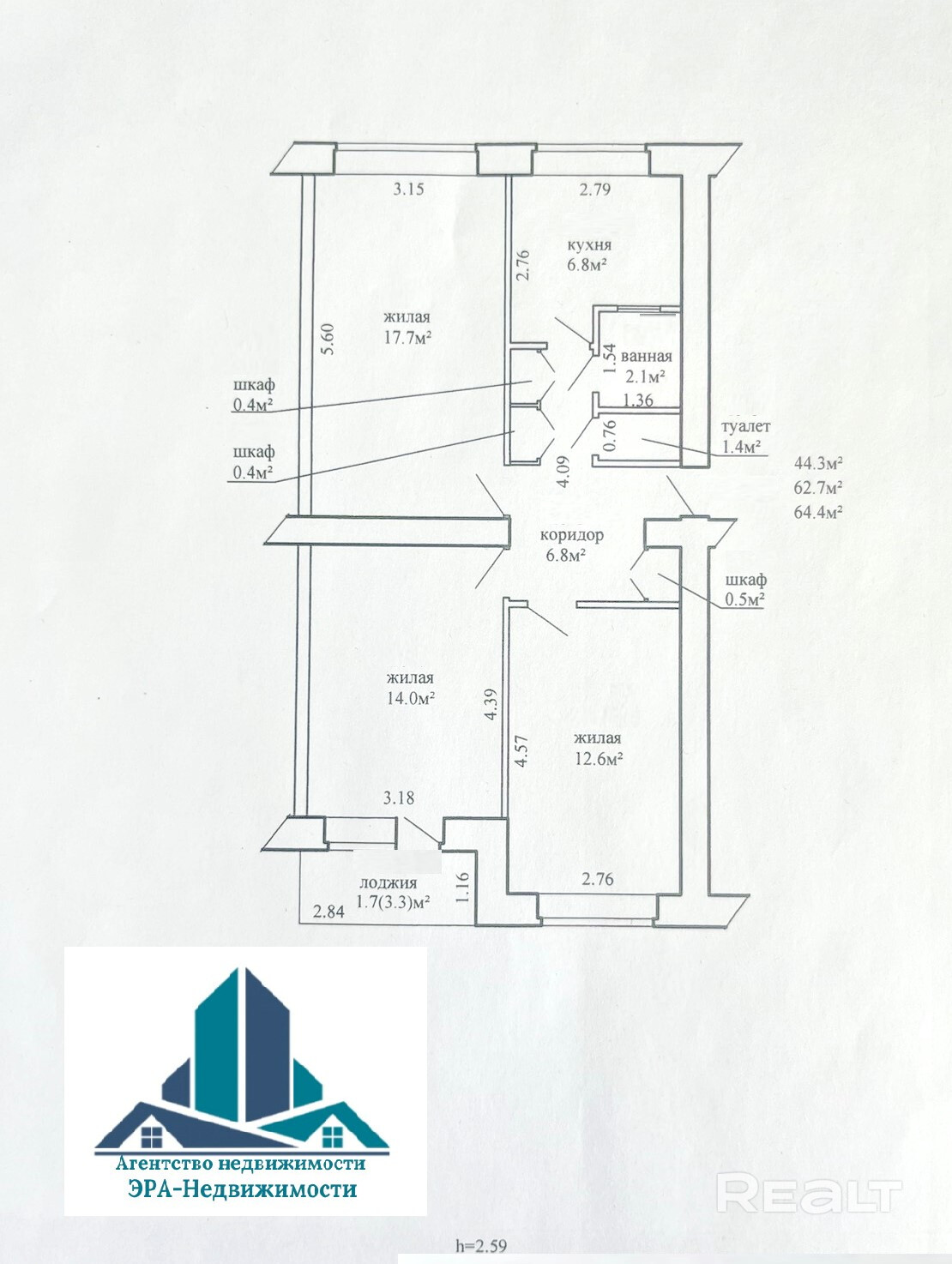 64.4 м²