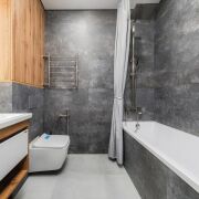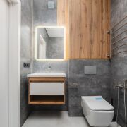 - Установлен водонагреватель, есть стиральная машина, а кондиционер обеспечит комфортный микроклимат в любой сезон — прохладу летом и мягкое тепло в переходные периоды.