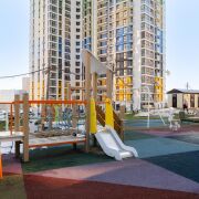 -На придомовой территории благоустроенный двор с современными детскими площадками, обеспечивающими безопасный отдых для малышей. Есть достаточно парковочных мест.