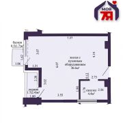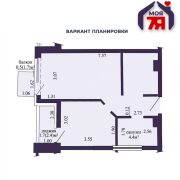 -Общая площадь 43,2 кв.м (жилая - 36,6 кв.м) .