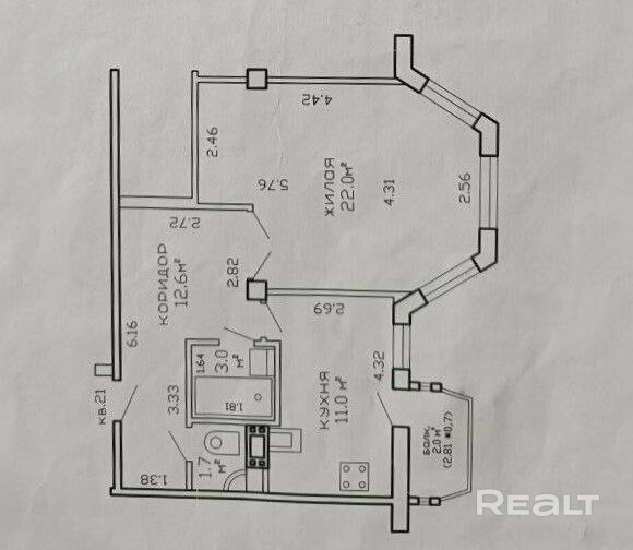 Жилая -22,0 кв.м.